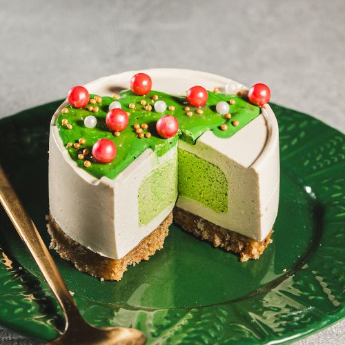 Capas cremosas, corazón de pistacho y base crocante: un petit gateau soñando para deslumbrar esta Navidad. |